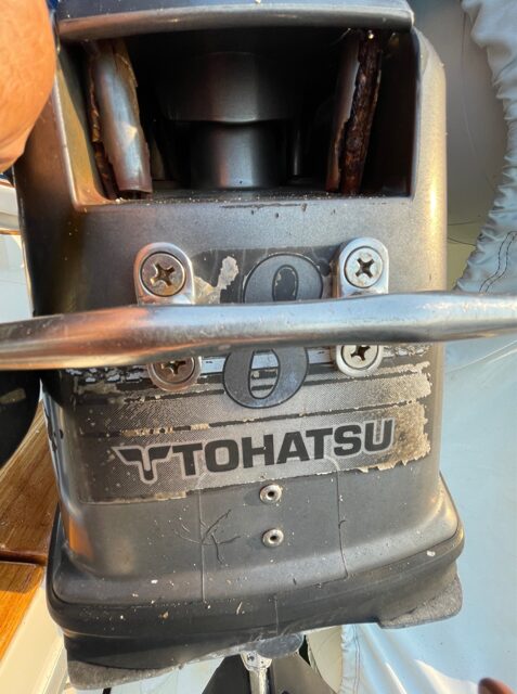 GROUND TACKLE & DINGHY 15 Kg Claw anchor / 250' - 5/16' galvanized chain with 150' nylon rode / Lofrans Cayman 12 volt 2 way windlass / Spare Danforth anchor, chain and rode in deck locker / Gala aluminum RIB A 300D (2022) / Tohatsu 8 HP 2 stroke outboard / Weaver SS davit system>