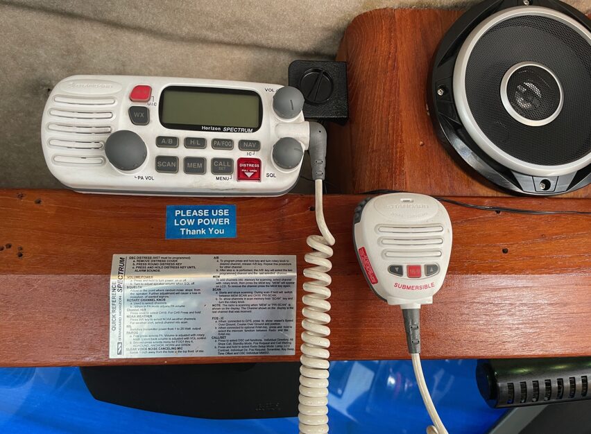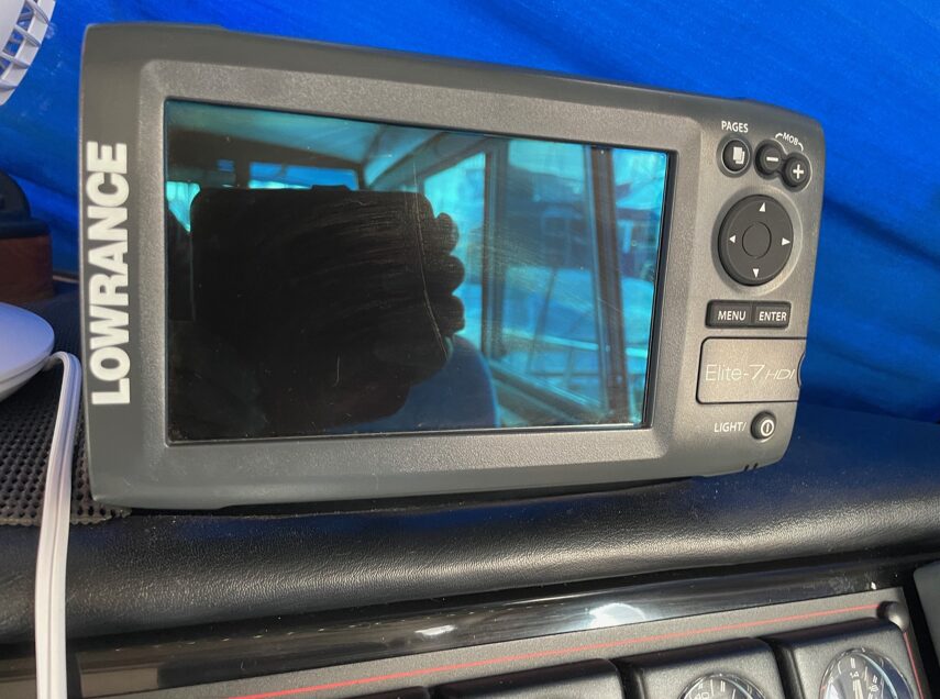 UPPER HELM Lowrance Hook 7 depth display / Horizon RAM mic (VHF) / Uniden UM 525 VHF radio with DSC / Ritchie 3" compass / Cockpit humminbird Fish Finder>