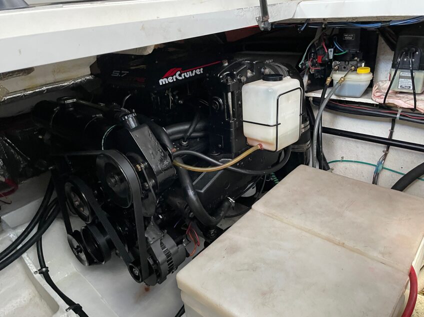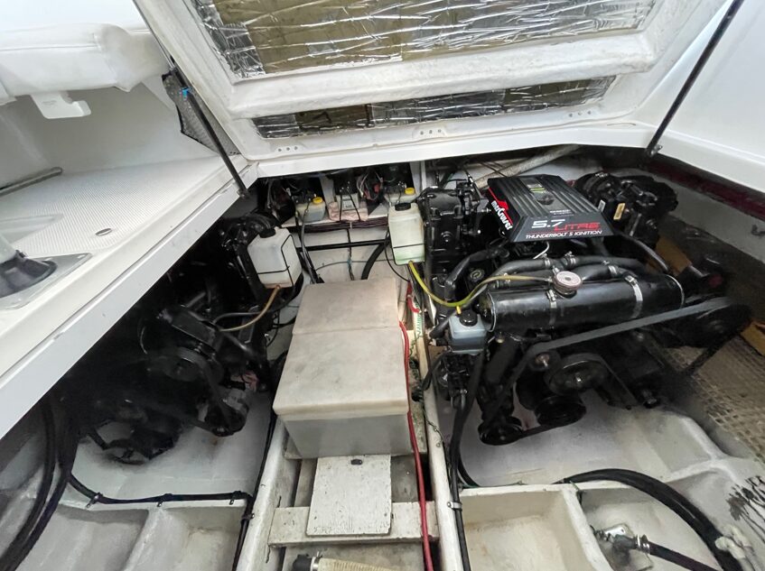 PROPULSION Engine Make: Mercruiser / Engine Model: 5.7 Thunderbolt 5 Ignition / Engine Year: 1999 / Total Power: 250hp / Engine Type: Inboard/Outboard / Drive Type: Stern Drive / Fuel Type: Gas / Propeller Type: 4 Blade / Propeller Material: Stainless Steel>