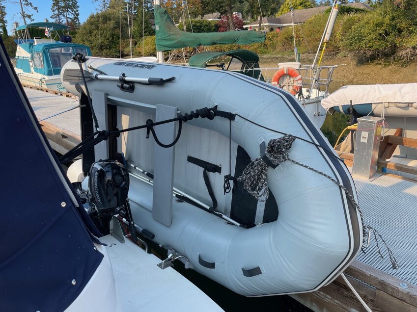 OTHER DETAILS 100 hour service and tune up completed September 2025 / Compression test on both engines September 2025 (no issues found) / Manifold and risers 2021 / Starboard transom shield replaced 2025 / Bottom painted 2024 / Quicksilver inflatable dinghy new in 2025 / 2.5 HP Mercury outboard engine 2022 / Bow cushion 2025 / Dinette seat re-upholstered with marine vinyl 2025 / Laminate flooring installed 2025>
