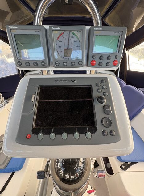 ELECTRONICS Raymarine ST 4000 auto pilot / Raymarine ST 60 wind speed, true and apparent wind and knotmeter / Raymarine E80MFD with GPS / Ritchie 5" binnacle mounted compass / AIS receiver / Stand Horizon VHF>