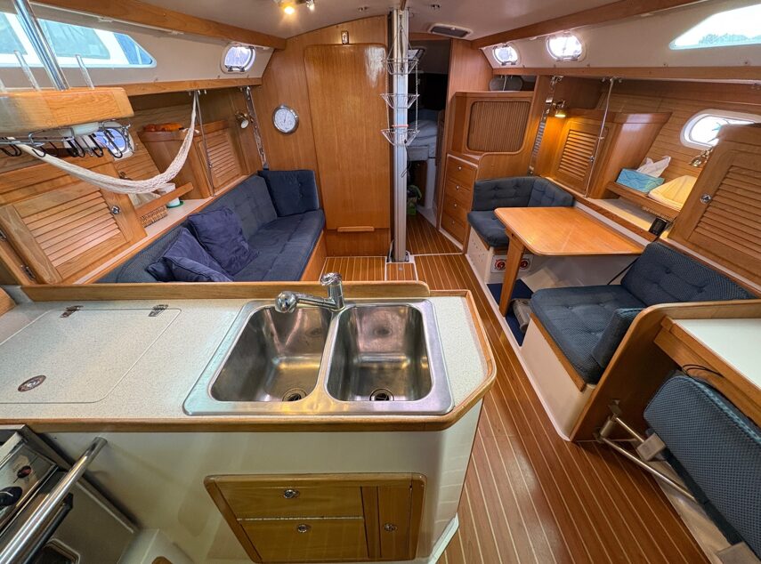 INTERIOR & ACCOMMODATIONS There is a good reason why the Catalina 36 has been such an extremely popular boat since its original introduction in 1982, more than 40 years ago. Strong, seaworthy, & spacious for her length, along with excellent sailing characteristics have made this design very, very popular. The production of the Catalina 36's was stopped in 2006, so this is your chance to own a professionally-maintained, lightly used example in very, very good condition. Stepping aboard "Kindred Spirit" you are greeted with a simple and effective deck layout, comprised of wide side decks to promote safe movement around the boat, and a large cockpit for comfortable cruising to days at anchor. A wide companionway opening makes for easy passage above and below. Her interior layout is very spacious as well. Starting in the bow, there is a large V-berth in the forward cabin with the custom mattress option and storage below. Stepping back brings you to the large head to port, with more storage and a hanging locker to starboard. Stepping further aft brings you past the keel-stepped spar into the main salon which offers a comfortable L-shaped settee to port, with a bulkhead mounted table. To starboard are the two seats with a small table in between, yet it can be lowered to make a traditional berth should additional space be necessary. Moving further toward the stern brings you to the functional galley to port, which has a large double sink setup, ample storage, and 12 volt refrigeration. Opposite to starboard is the navigation station with chart table and electrical distribution panel. Access to the aft cabin is via the starboard side, and it opens up to an athwartships berth also with a spring-mattress. Lights have been upgraded to LED's.>